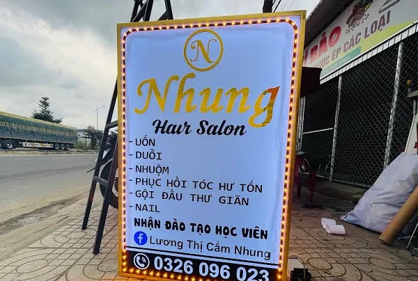 Biển vẫy Salon Tóc (Hair & Nail) – LED màu hồng thu hút